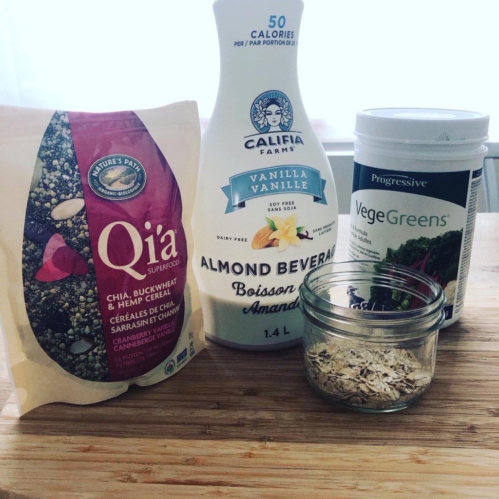 I use to make smoothies for breakfast and sneak this green powder in to make sure my son was getting at least something green in his diet. Then I discovered that it actually tastes really good. Sometimes I just mix a scoop of it with almond milk. Then recently I had the idea to add it to my overnight oats and was pleasantly surprised. It takes about a minute to mix up and is very portable if you are on the run or need to pack it with you.